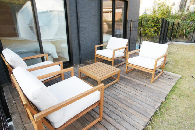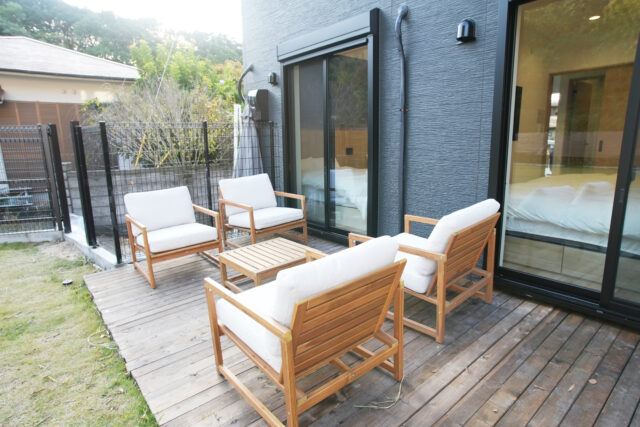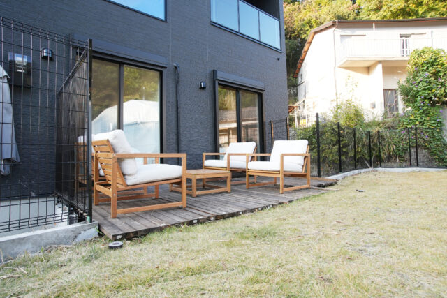 お庭では、ワンちゃんを遊ばせながら、ご家族みんなでゆったり休憩。