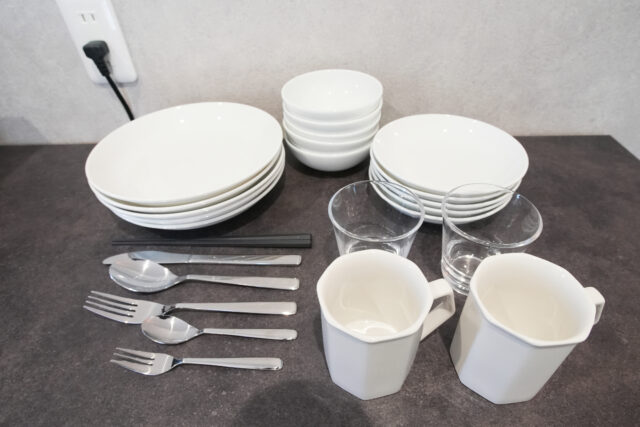 お皿や食器は複数ご用意し、大家族やご友人どうしでのお食事やパーティーも可能。